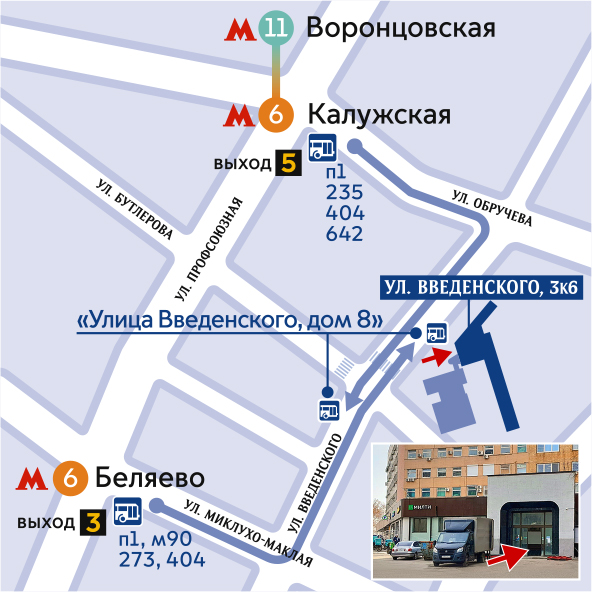 автобусы: П1, 235, 404, 642 до остановки «ул. Введенского, 8»